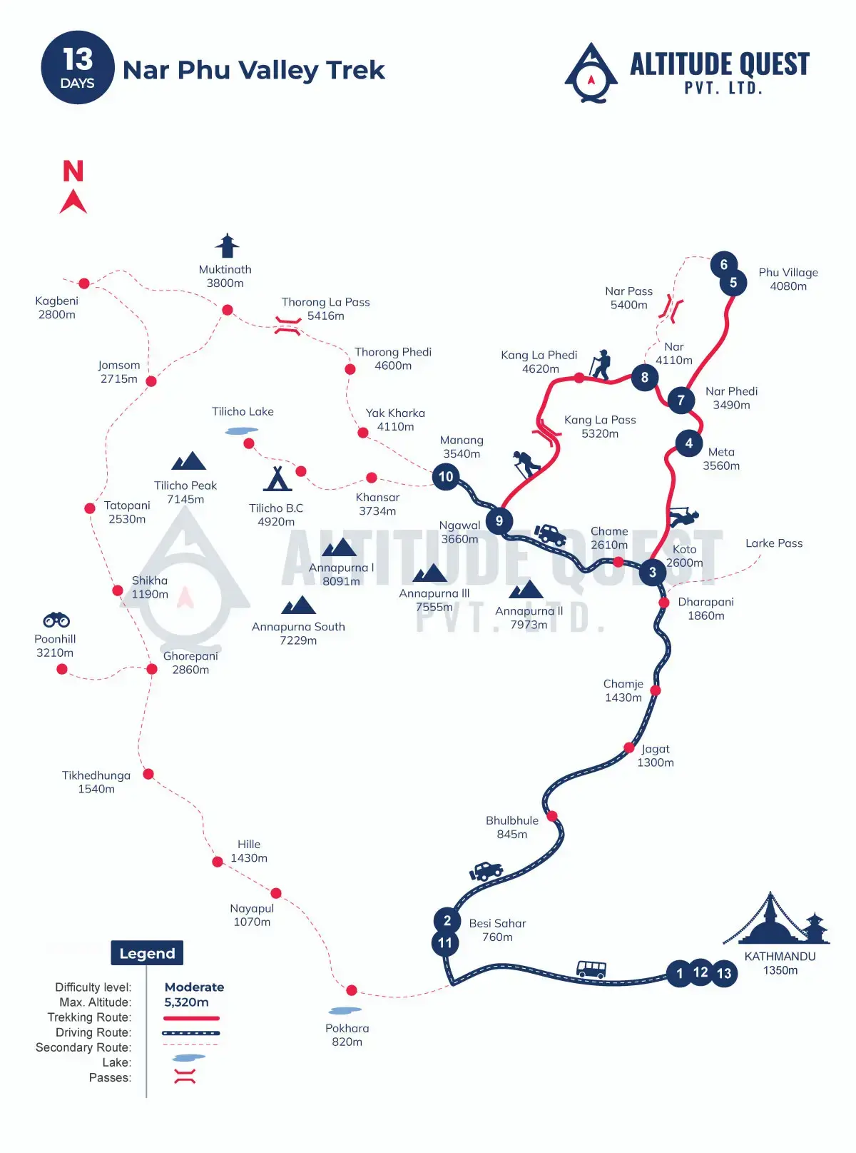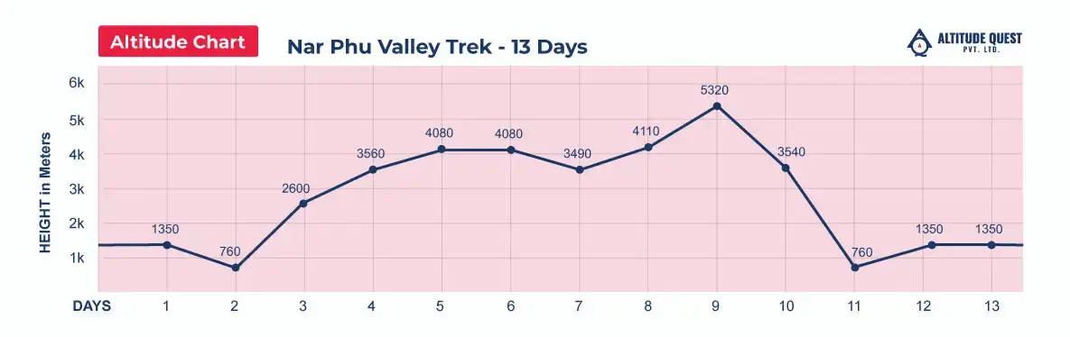 The Nar Phu Valley Trek is a special expedition to the center of the Annapurna Himalayas, one of the most secluded and culturally fascinating regions of Nepal. Rather than tracing the Annapurna Circuit, the trek veers off the main path to the isolated Nar and Phu valleys in a limited region for which special permission is required, so that trekkers have an exclusive and novel experience. The trekking is through traditional Tibetan-influenced settlements where centuries-old lifestyles continue unconstrained, against the backdrop of giant snow-capped mountains towering large in the distance. Trekking along narrow trails and uneven terrain, you will cross the breathtaking Kang La Pass (5,300 meters), one of the highest and most breathtaking passes in the region, with panoramic views of some of the highest peaks in the world such as Annapurna II, Gangapurna, and Tilicho Peak.